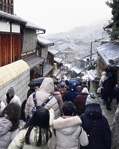 いえ、むしろ「雪の日の清水寺(雪化粧の舞台)を見たい!」という人々で、かえって賑わいを見せるほどです。